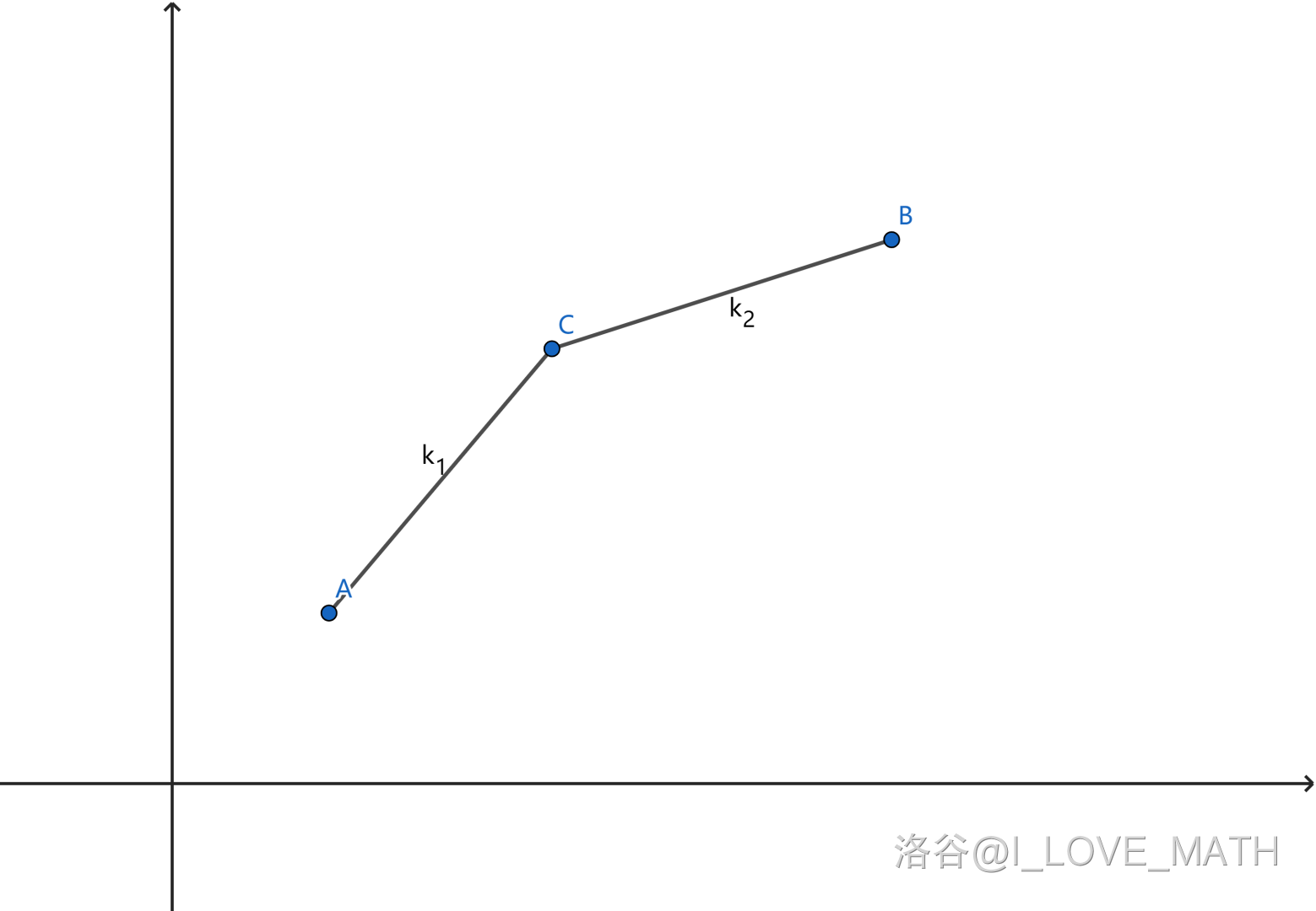 - 当 \(k_2\le k\le k_1\) 时,则 \(A\)、\(B\) 至少有一个比 \(C\) 优。