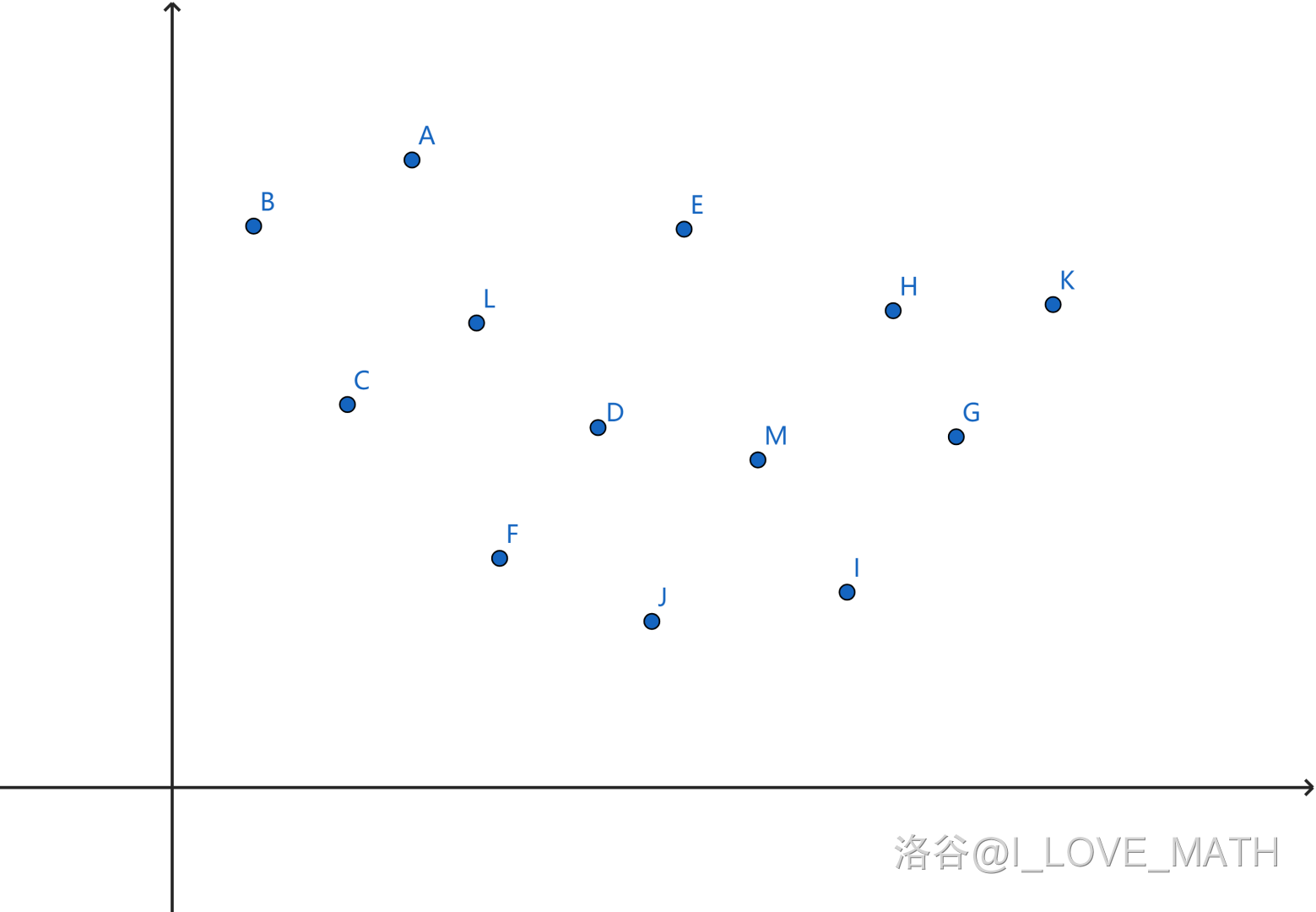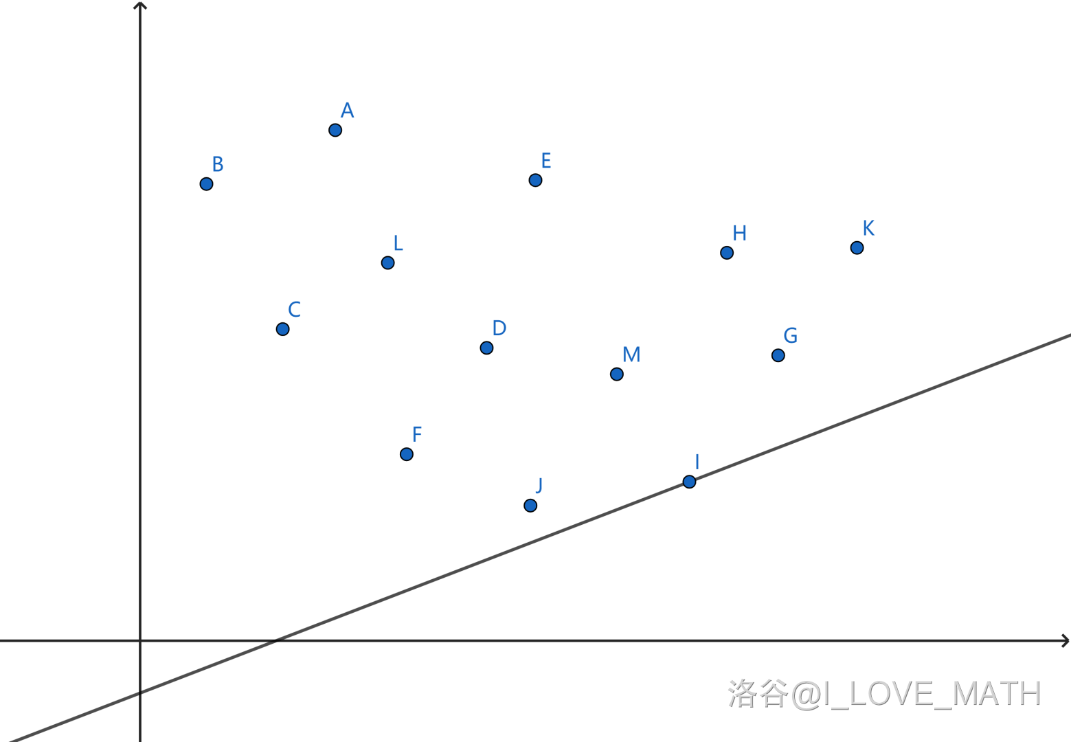 将所有决策点 \((b[j],-d[j])\) 在平面直角坐标系中表示出来: