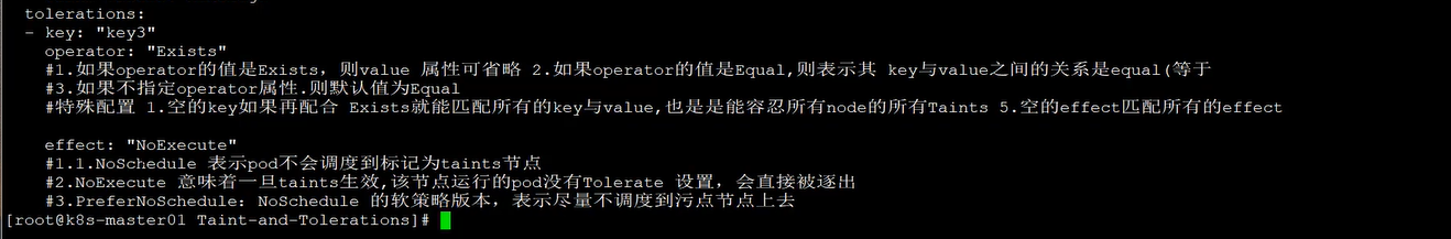 NoExecute: 表示K8S将不会将Pod调度到具有该污点的Node上,同时会将Node上已存在的Pod驱逐出去