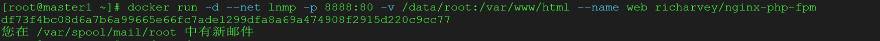 docker run -d --net lnmp -p 8888:80 -v /data/root:/var/www/html --name web richarvey/nginx-php-fpm