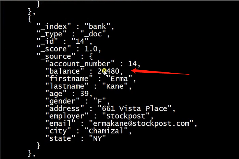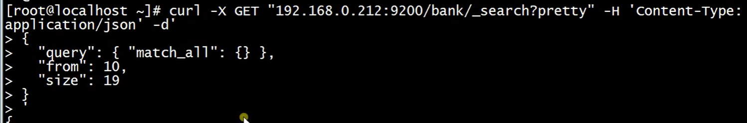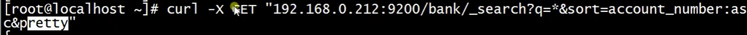 根据json文件导入查询:q=*表示查询所有文档,sort=account_number:asc 表示根据account_number升序排列, pretty 表示以友好的格式显示:_search表示查询接口