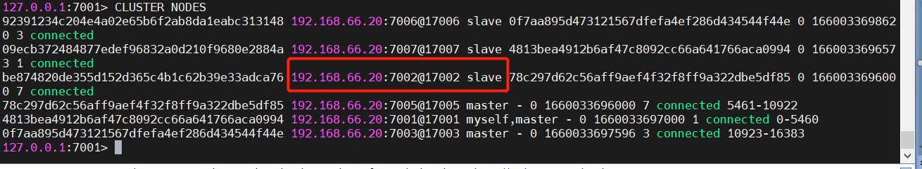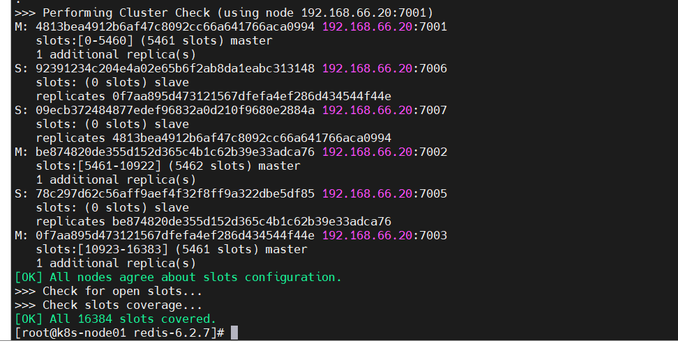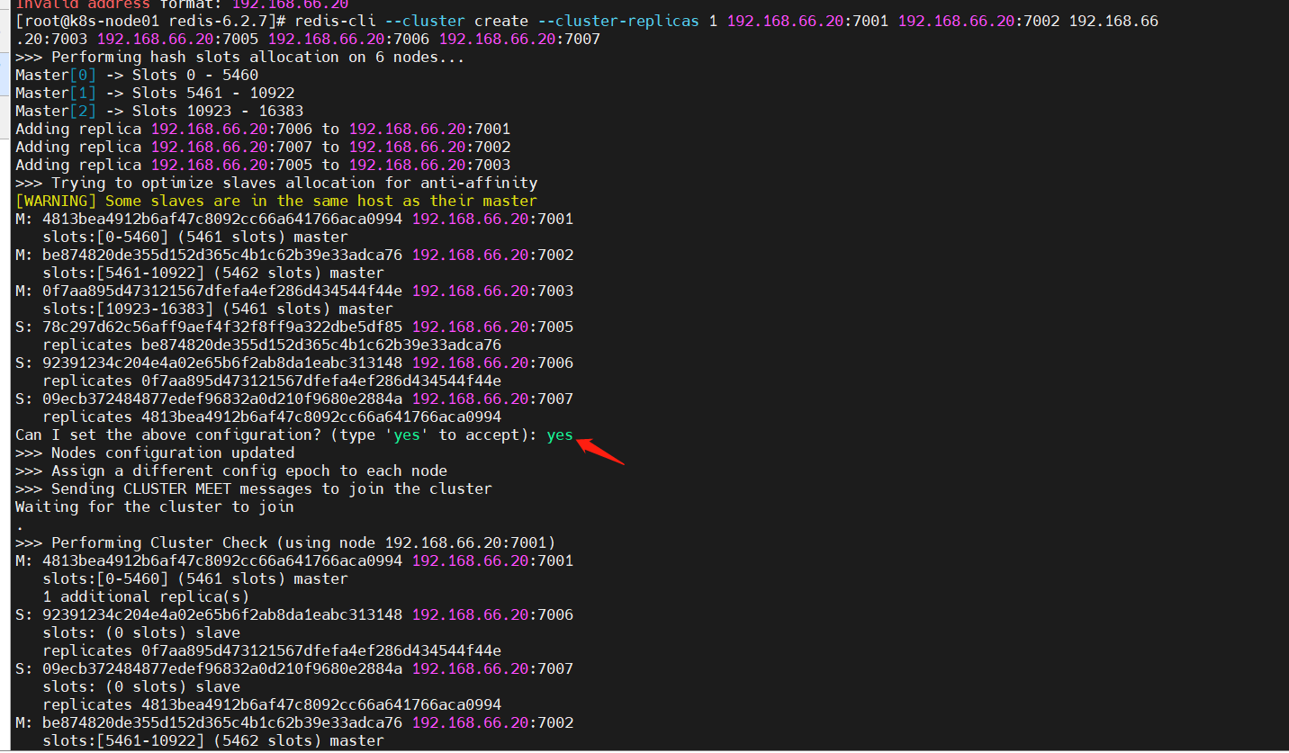 redis-cli --cluster create --cluster-replicas 1 192.168.66.20:7001 192.168.66.20:7002 192.168.66.20:7003 192.168.66.20:7005 192.168.66.20:7006 192.168.66.20:7007
