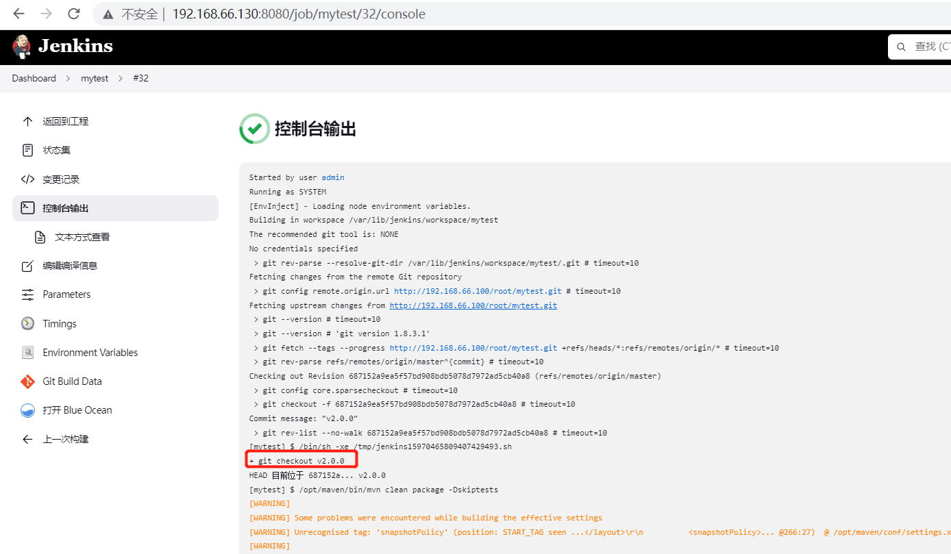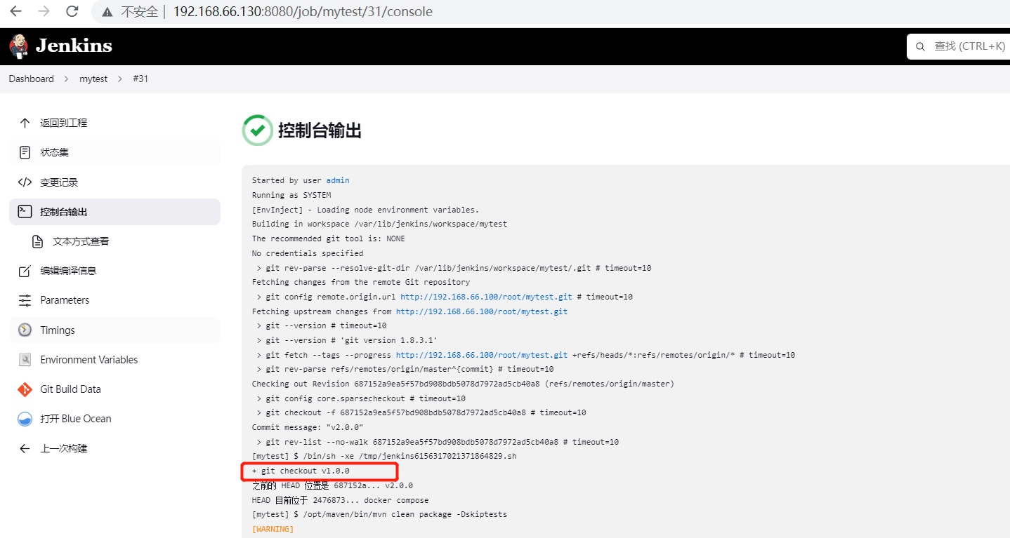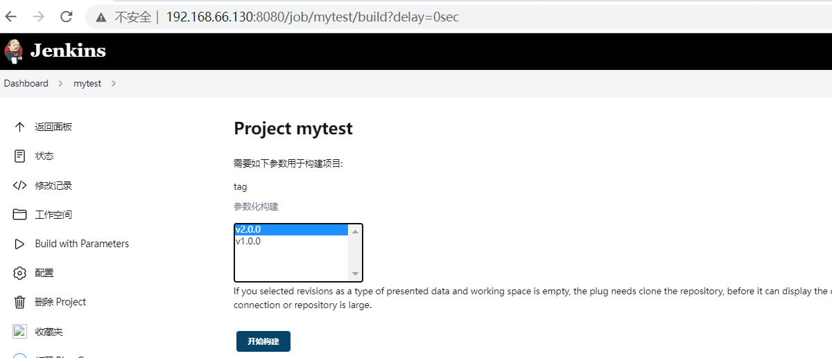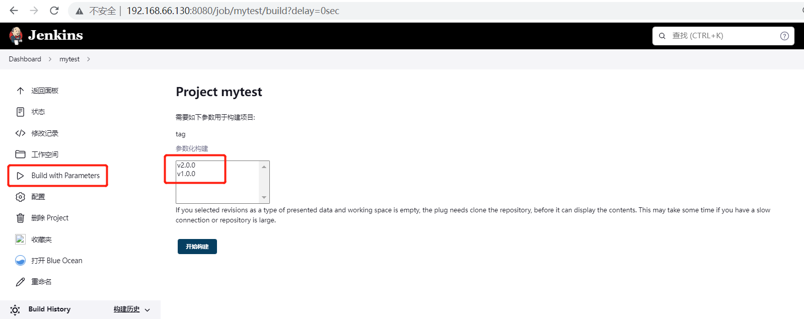 提交后,再次在jenkins上构建:有 2个版本可以选择,构建出不同的版本