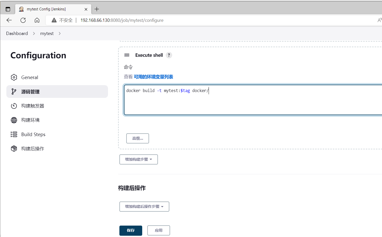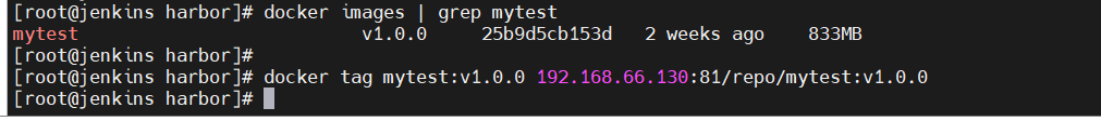 docker tag mytest:$tag 192.168.66.130:81/repo/mytest:$tag