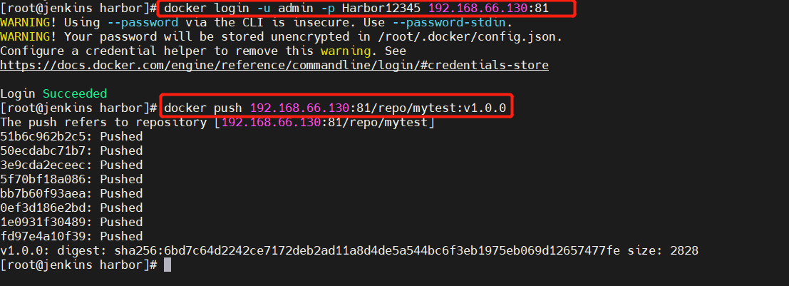 docker login -u admin -p Harbor12345 192.168.66.130:81