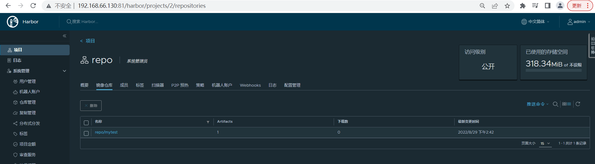 docker push 192.168.66.130:81/repo/mytest:$tag