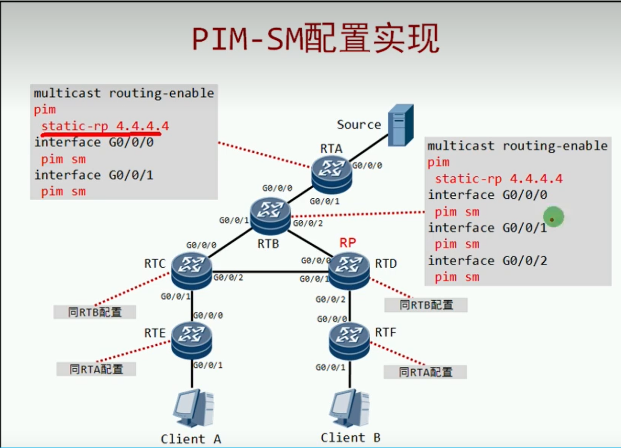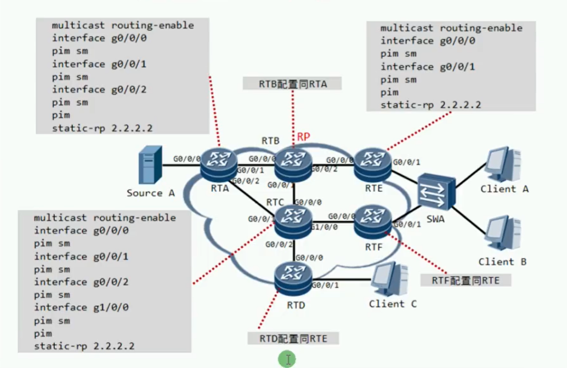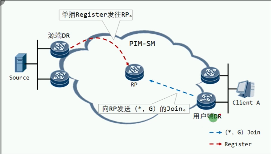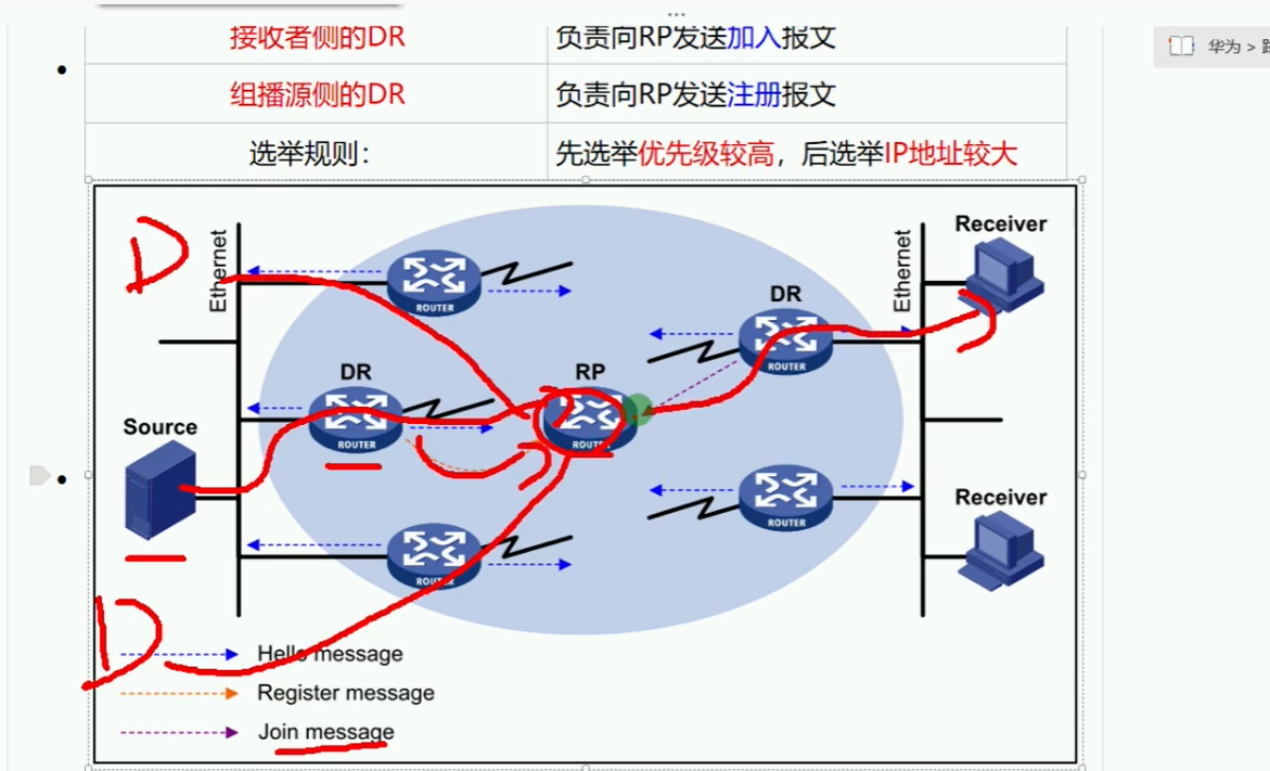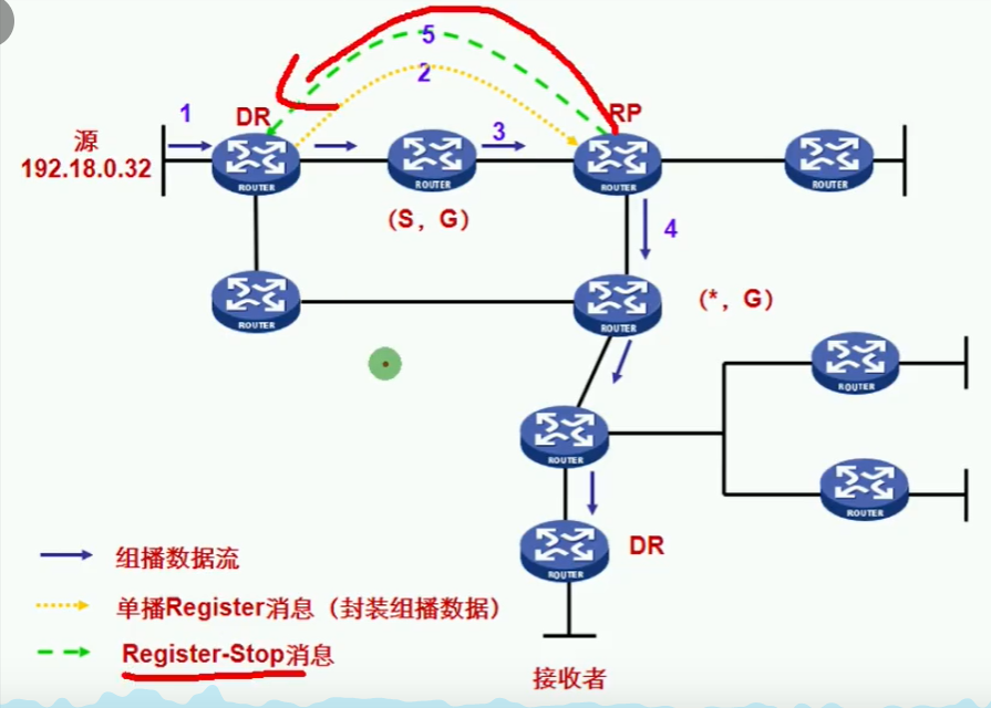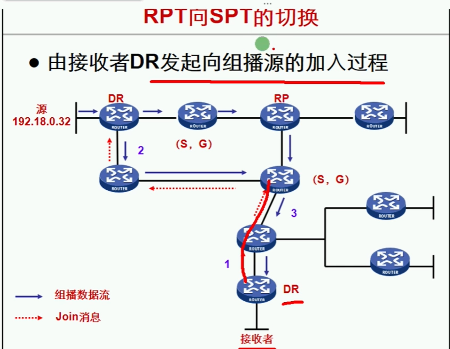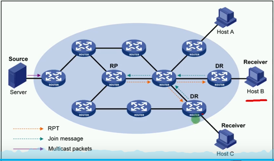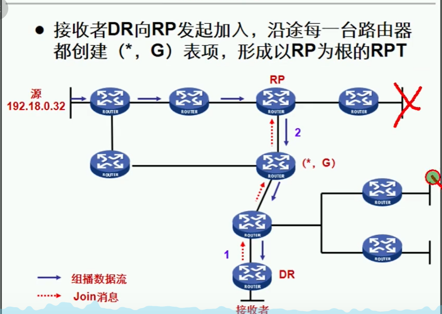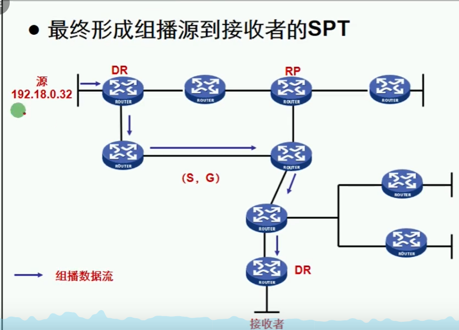 如果有多个组播源,侧在RP左侧建立多个spf 树,RP右侧对每个接收节点,生成一颗RPT树