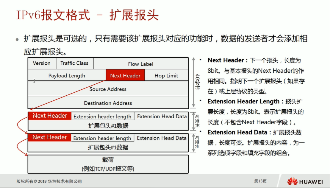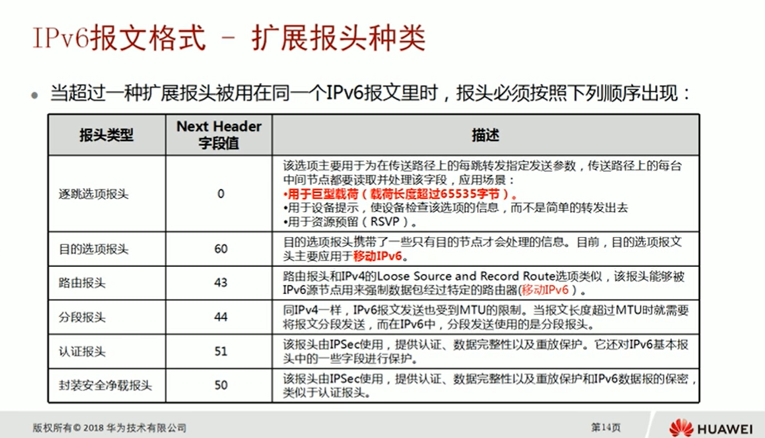 支持IPv6移动特性的2个报头:(1)目的选项包头 (2) 路由选项包头