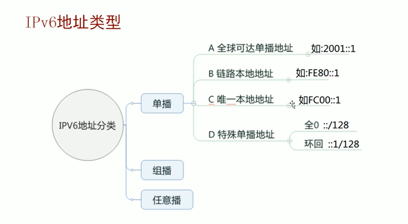 任意播地址:跟单播地址是重复的(等同于),任意播地址只发送到最近节点的任意播地址节点,任意播地址只能作为目的地址,不能作为源地址