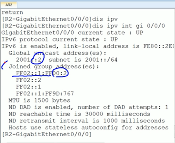 接口每配置一个IPV6地址,都会生成一个被 请求节点组播组地址,形式是FF:02::XX:XX ,后几位是配置的IPV6的后半部分