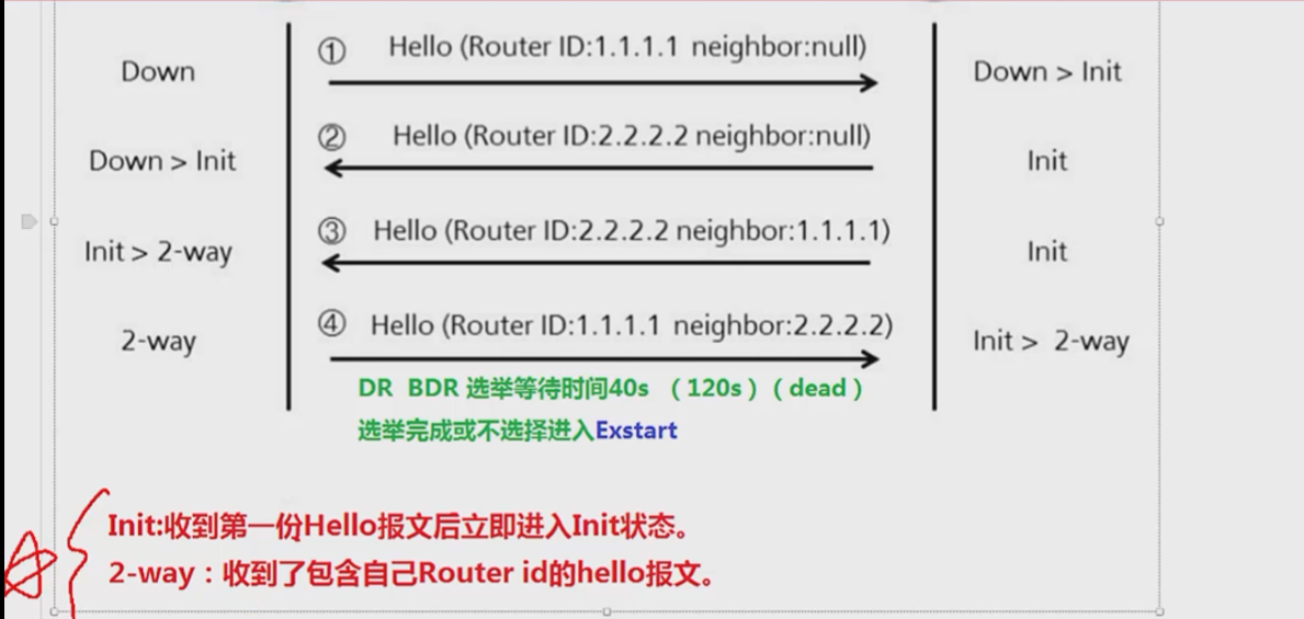 40秒是指广播类型的网络的,从发送第一个hello包后等待的时间,经过40秒后,开始选举DR或BDR