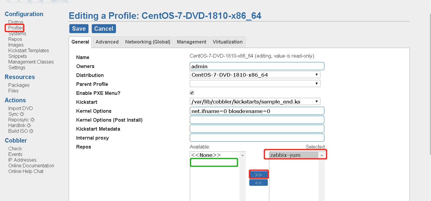 [root@cobbler kickstarts]# cat CentOS-7-x86_64-DVD-1810.cfg