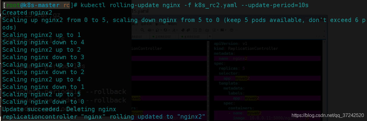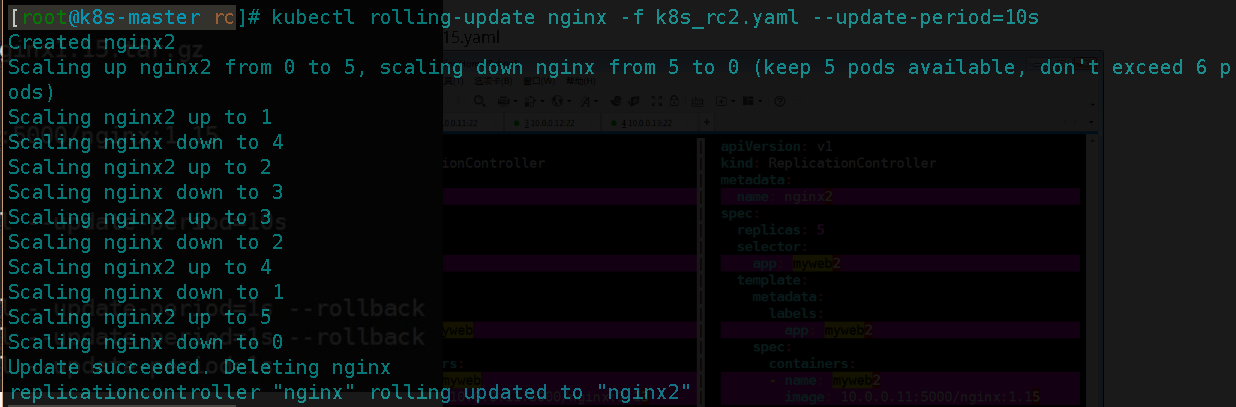 kubectl rolling-update nginx2 -f k8s_rc.yaml --update-period=1s