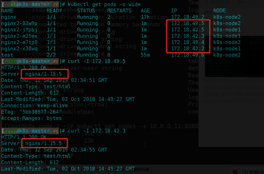 nginx-309cg 1/1 Running 0 5m 172.18.49.3 k8s-node2