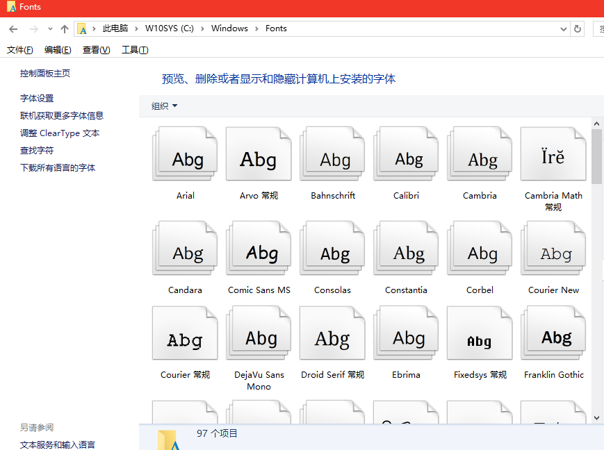 windows电脑上的字体库路径