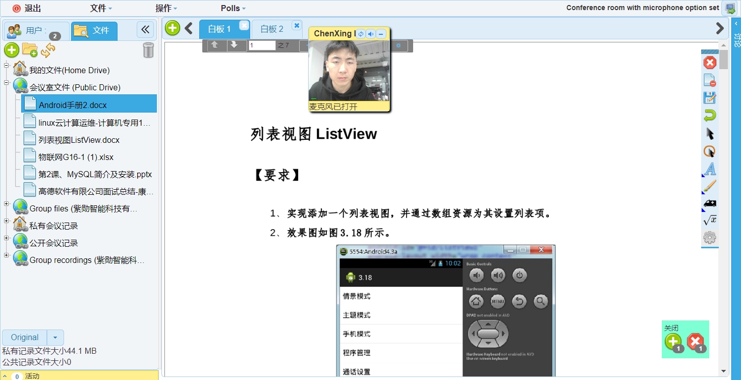 支持音频、视频,支持共享桌面,文件协作处理,它还包含一个白板,通过白板可以导入各种格式的图片,DOC,DOCX,PPT,PPTX,pdf,jpg等文档。