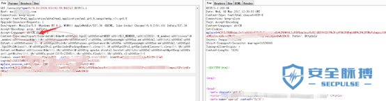 2、某云waf的检测方法也是很简单,直接检测Content-Type中的multipart/form-data,绕过方法很简单,添加Content-Type:smultipart/form-data${exp}后面跟EXP代码就行