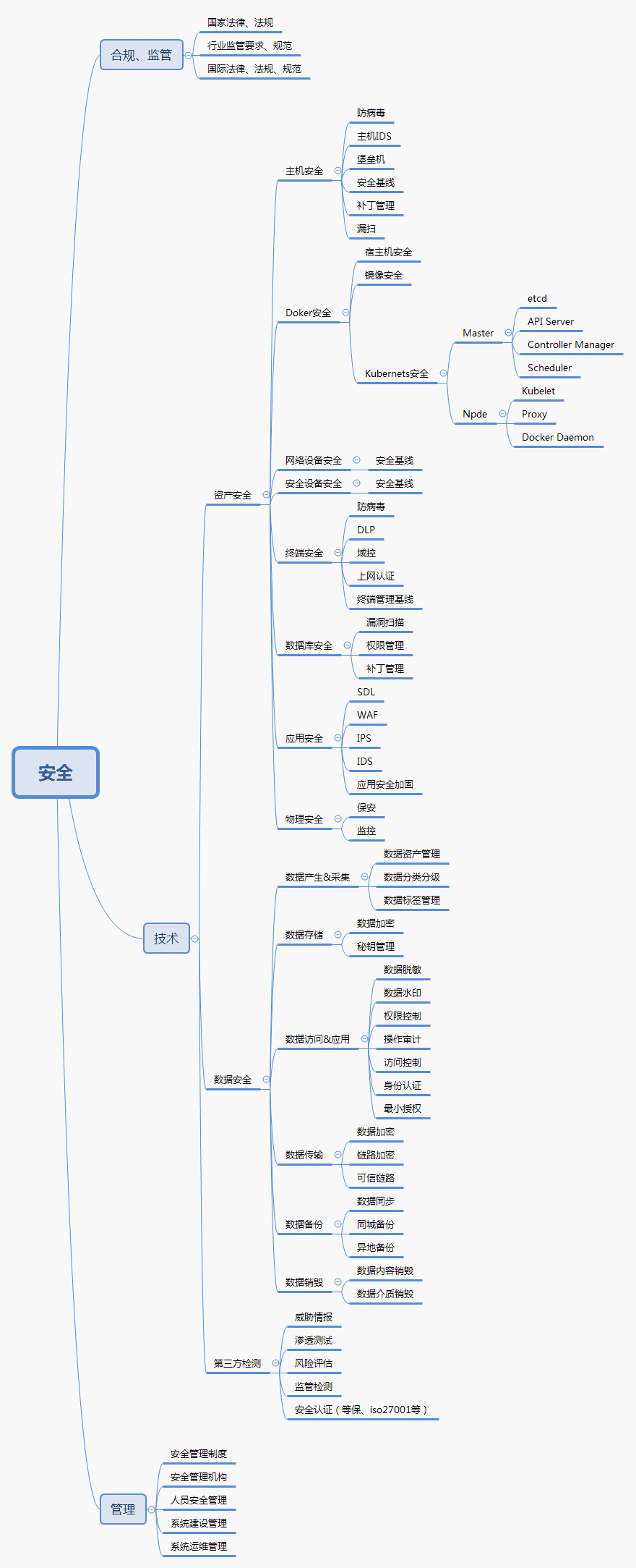 技术层面:主机安全问题、docker安全问题、网络安全问题、应用安全问题、数据安全问题、物理安全问题;