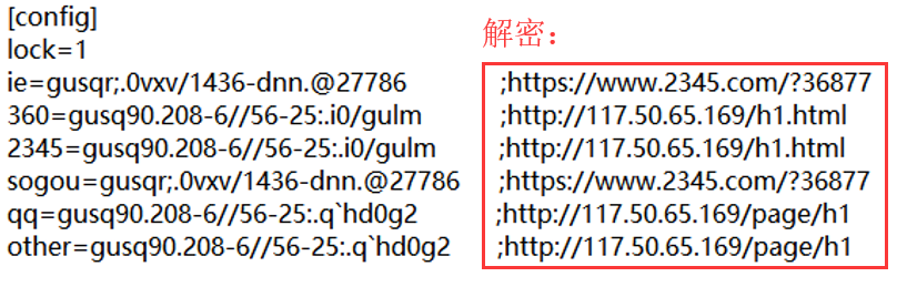 配置文件解密后,内容如下,其中的Url则为病毒的更新升级链接:
