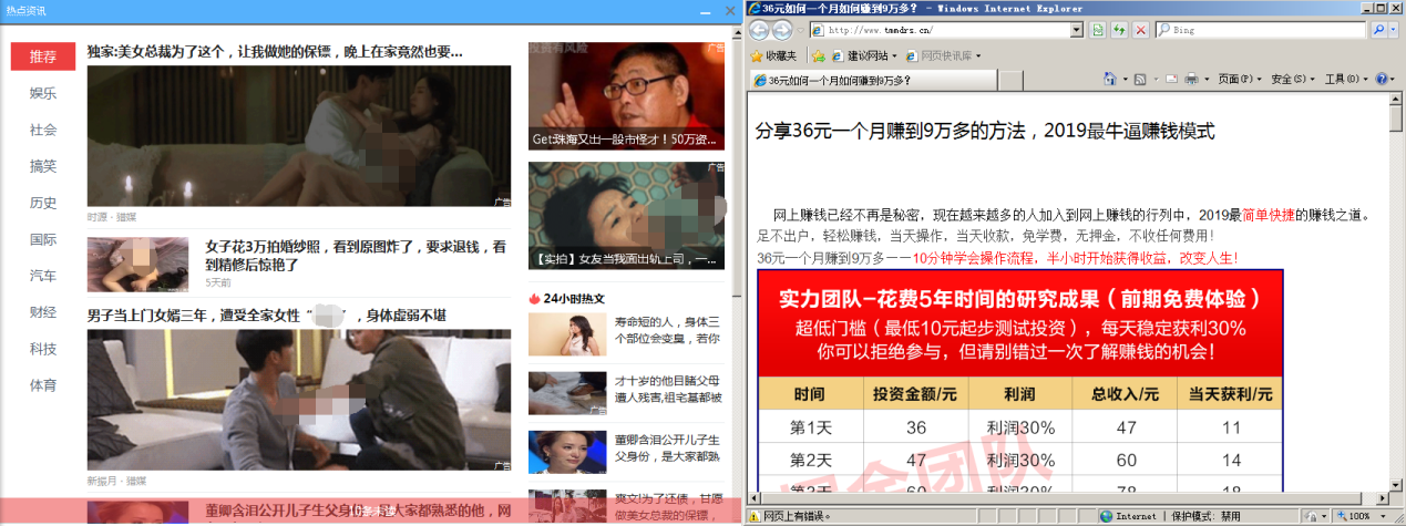 调用EPTask.DLL的DLLRun导出函数,弹出的热点资讯广告窗口以及浏览器广告弹窗: