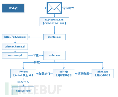 近期腾讯安全御见威胁情报中监测到有黑客组织利用“商贸信”病毒针对外贸行业的APT攻击再次活跃。此轮攻击的特点为,利用2017年微软公布的office公式编辑器漏洞CVE-2017-11882构造钓鱼文档,文档触发漏洞后通过mshta.exe执行由短链接bit.ly构造的远程代码,从而将后门木马植入。