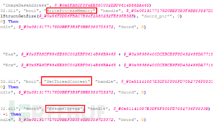 解密出的随机名脚本文件共有754行代码,同样作为参数由脚本执行器lfw.exe执行,脚本实现虚拟机检测,安装启动项,解密PE数据,注入进程执行等核心功能,并且会在执行结束后被立即删除。