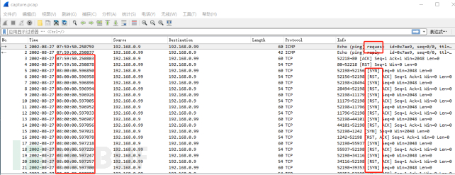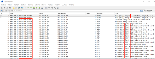 2)将文件名修改为capture.pcap 利用wireshark工具查看内容,如下