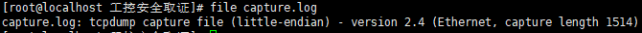1)首先利用linux file命令查看日志文件属性,发现capture.log被出题者故意篡改过,对解题人进行迷惑。从下图中可以看出该文件为tcpdump 抓包后的文件