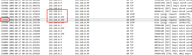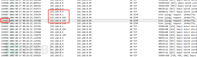 3)再次阅读题目理解出题人的意思,第四次发起扫描数据包编号,继续分析题目,发现数据报文有多个ip都对192.168.0.99目标机器进行扫描,分别为192.168.0.9、192.168.0.1、192.168.0.254、192.168.0.199,它们共同特点是每次发起端口扫描时候,先进行ping操作,尝试提交第四次发起扫描第一个报文编号155989,提交flag,显示成功。