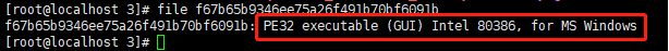 1)首先利用linux file命令查看文件类型,发现该恶意软件是windows平台下可执行文件,如下图所示