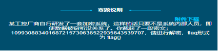 出题者刚开始只给了加密字符串,未提供加密算法,由于算法是自己写的,导致很多选手不能解出来,过了几个小时,出题方才提供了加密算法。