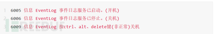 其中事件ID 6006、ID 6005、ID 6009就表示不同状态的机器的情况(开关机)。