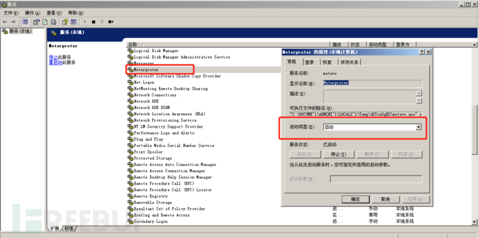 我们以MSF权限维持中的Metsvc 模块,只要攻击者使用这个模块的后门,在服务中就会自动生成meterpreter这个服务,类型为自动启动。只要遇见这样的服务,我们就可以断定服务器已经被别人盯上了,而且是已经留了后门。