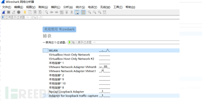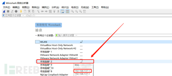 9、在电脑打开WireShark,监听刚才开启的虚拟无线网卡: