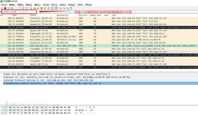 接下来当然是使用WireShare监听数据并观察分析下,先简单说下WireShare的基本使用。
