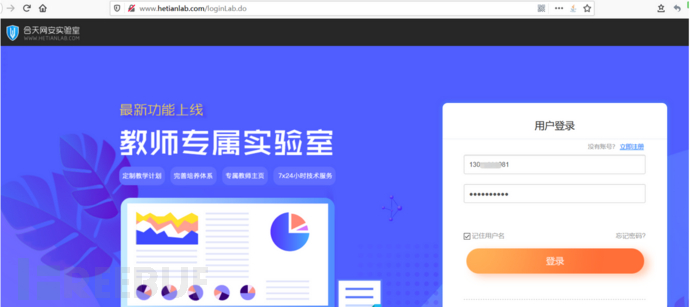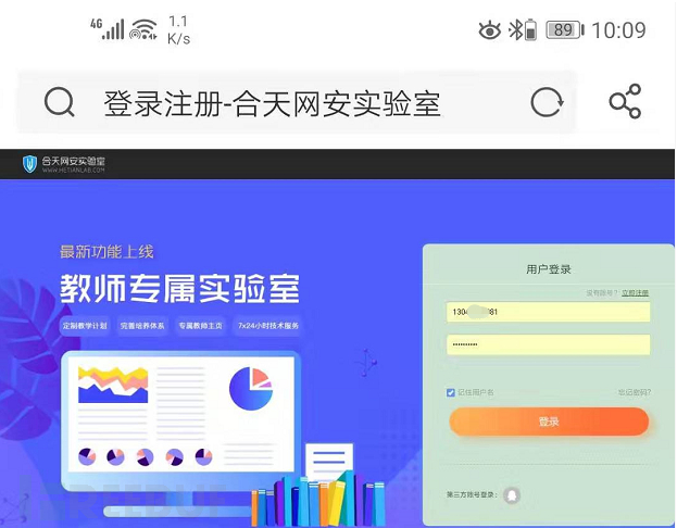11、进一步验证一下!!手机浏览器打开“合天网安实验室”站点的登录页面,并进行登录: