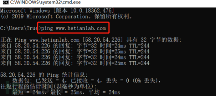 在CMD中Ping域名,获得站点IP地址58.20.54.226: