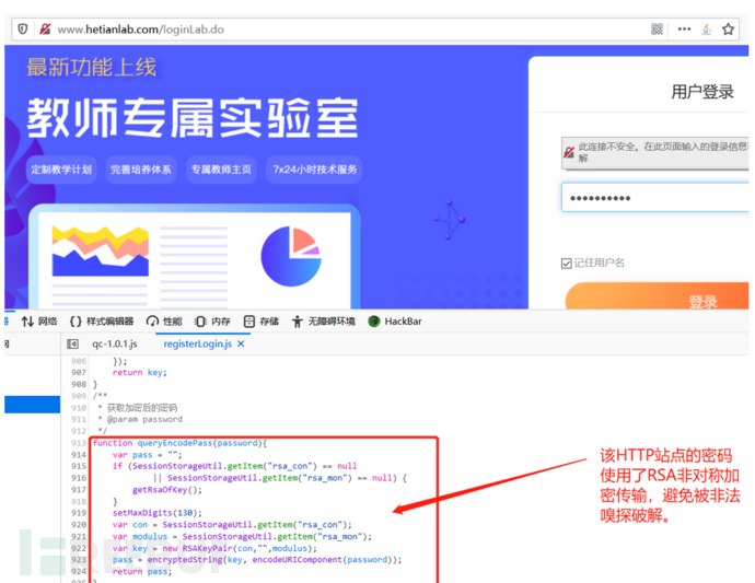 查看前端代码,可发现该HTTP站点确实对账户密码做了前端加密后再进行传输: