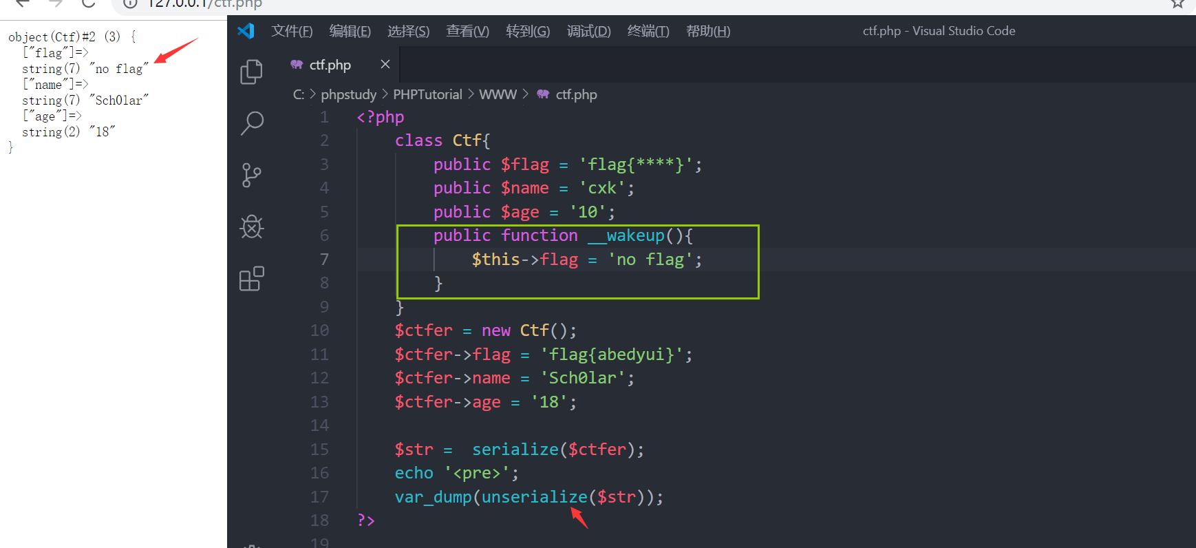 代码中存在 __wakeup前面说过。