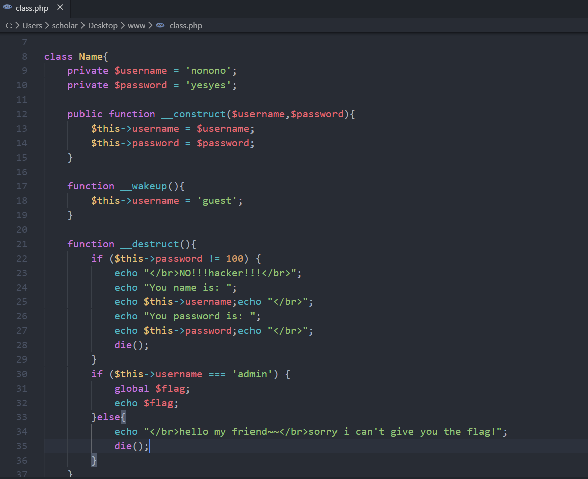 读了class.php 发现需要 username=admin 并且 password=100才可以 还有一段核心代码