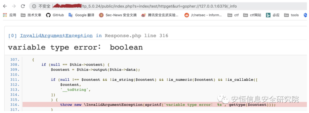 至此,只要访问代码中触发缓存的点即可触发ThinkPHP5反序列化。