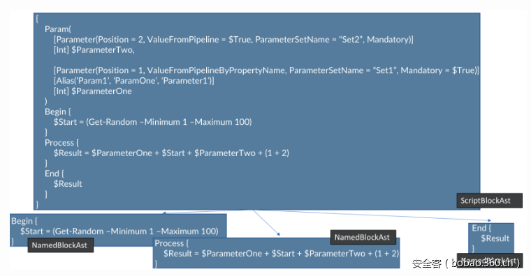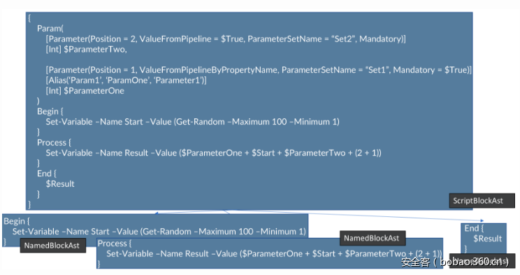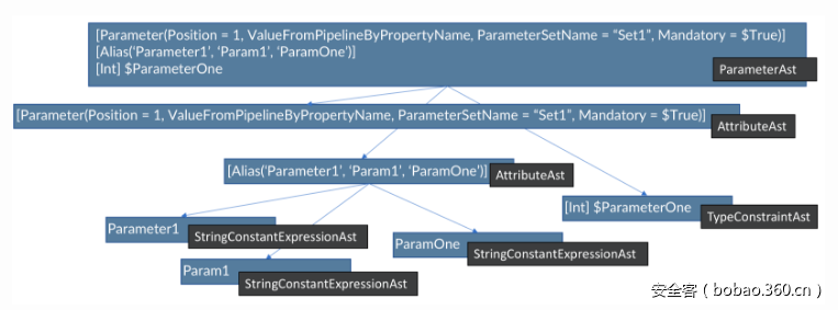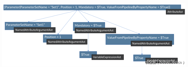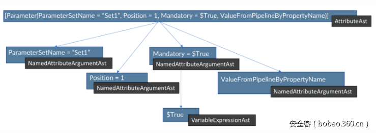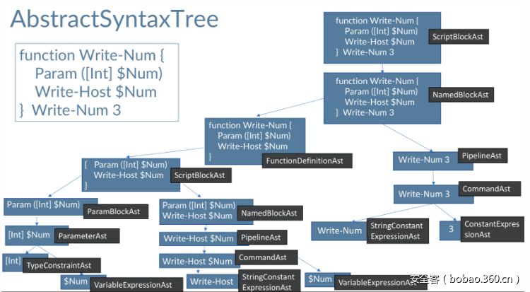一个PowerShell脚本可以对应一个完整的AbstractSyntaxTree结构,如下所示: