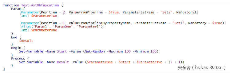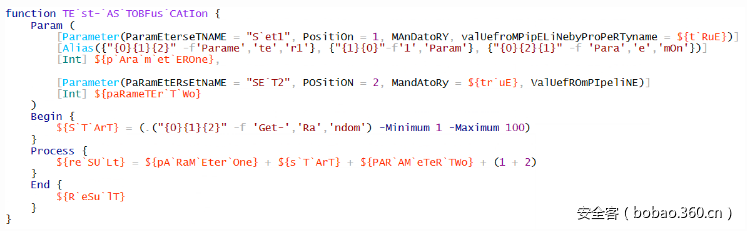 这个PowerShell函数并没有什么实际功能,但有助于我们理解基于AST的一些混淆技术。