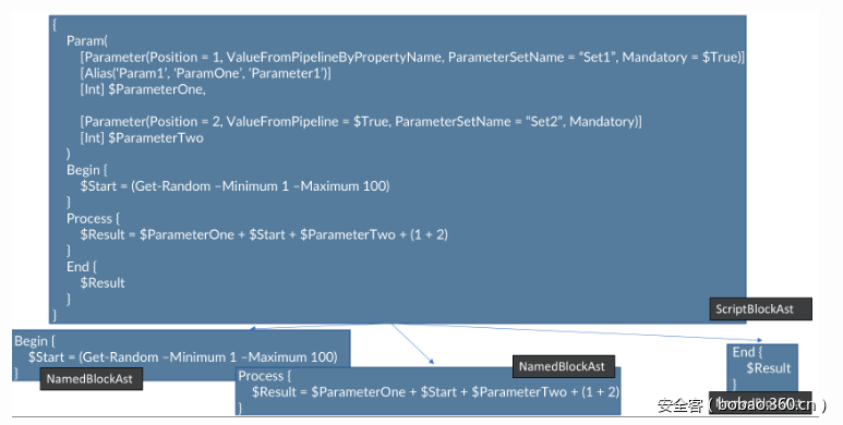 最后,我们可以重新排列该函数中ScriptBlockAst中的Begin、Process以及End代码块的顺序,如下所示: