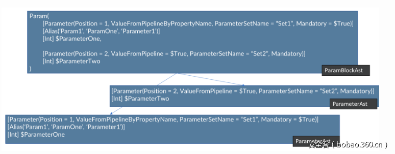 当然,我们也可以将这种处理方法用在第二个参数ParameterTwo上。我们可以重新排列ParameterTwo中AttributeAst 中的属性,就像第一个参数中的混淆过程一样: