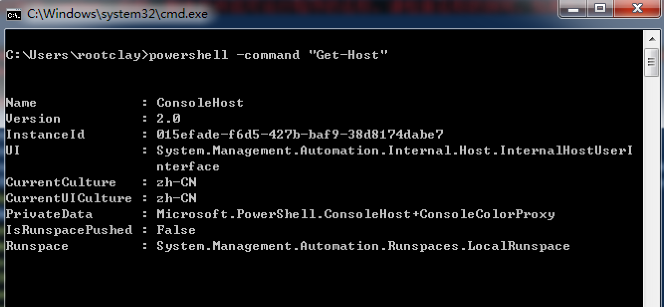 那么对于我们的安全人员来说我们用什么版本呢?毫无疑问是v2,为什么呢,应为在win7当中默认安装了v2,而且之后的版本都是兼容v2的,v1版本所有的功能对于我们的需求很多都不能瞒住,所以v2成为了我们目前来说独一无二的选择,通过下面的方式我们可以看到我们的powershell的版本与一些详细的信息,后面我们的代码,大多都是以v2.0来讨论的。