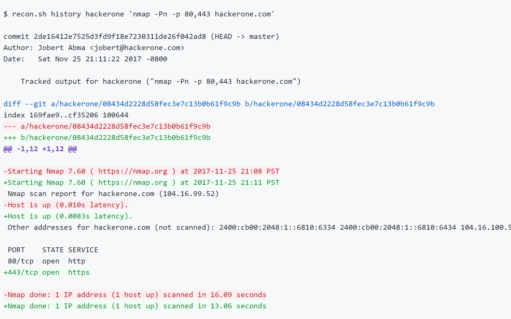 recon.sh track hackerone 'nmap -Pn -p80,443 hackerone.com'