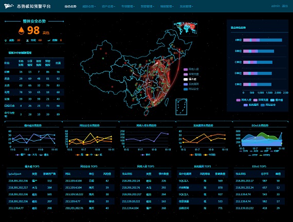 - 管理层的高层领导,可掌握全网的整体安全态势,评估全网和为安全态势感知提供必要的决策支撑。