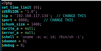 cp /usr/share/webshells/php/php-reverse-shell.php reverse-shell.php vi reverse-shell.php