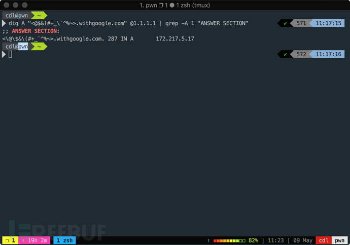 dig A "<@$&(#+_\`^%~>.withgoogle.com" @1.1.1.1 | grep -A 1 "ANSWER SECTION"